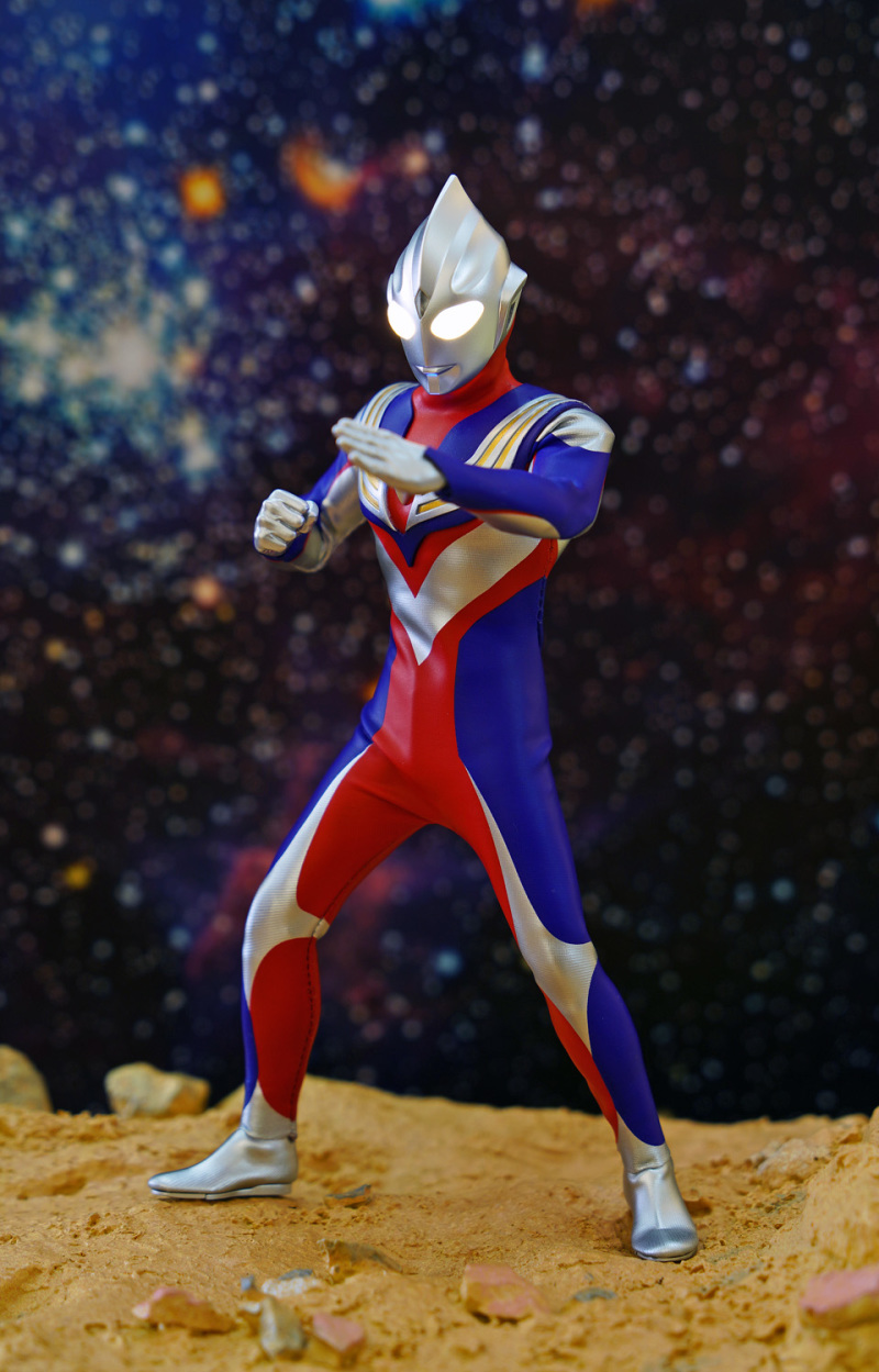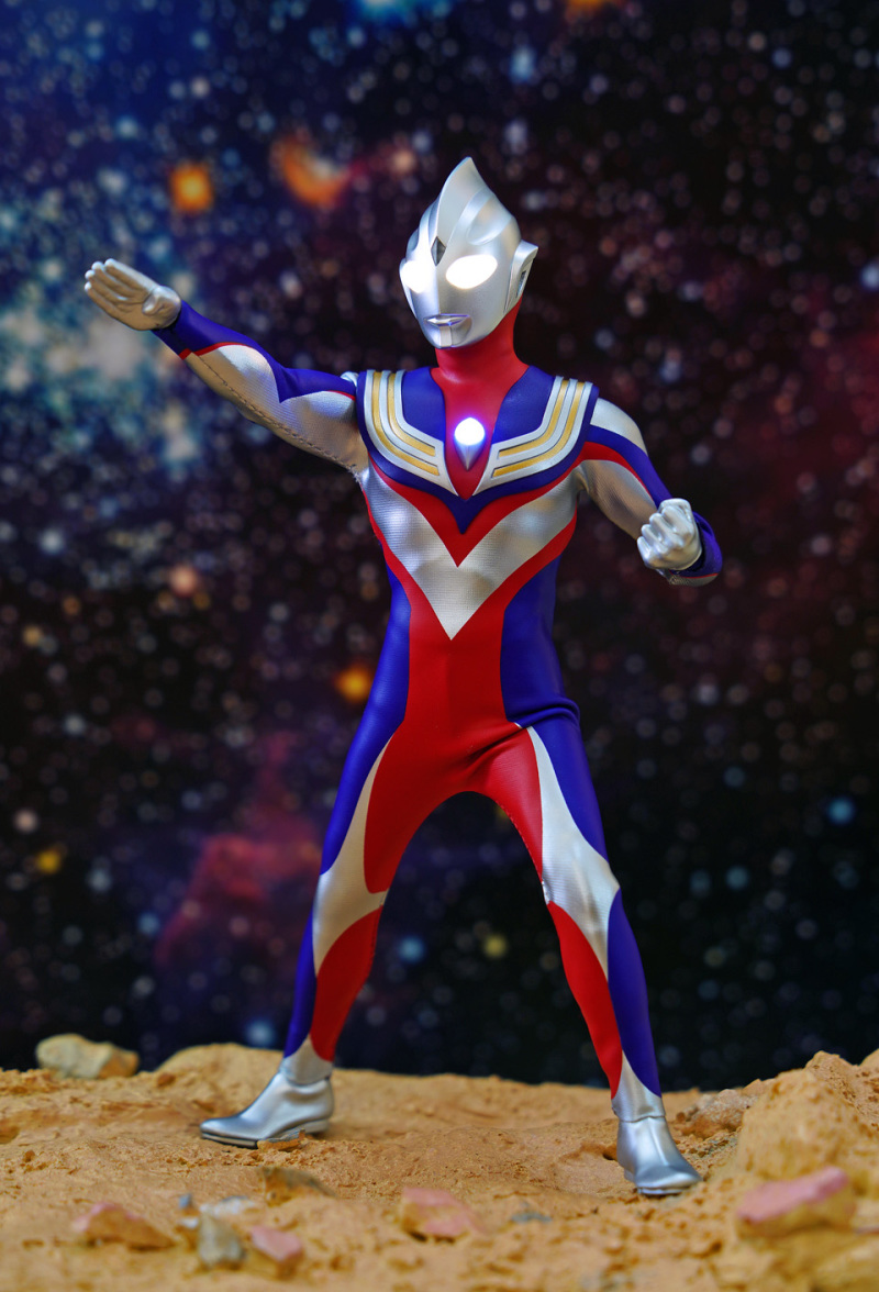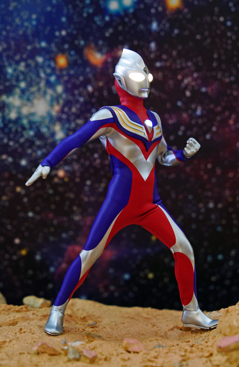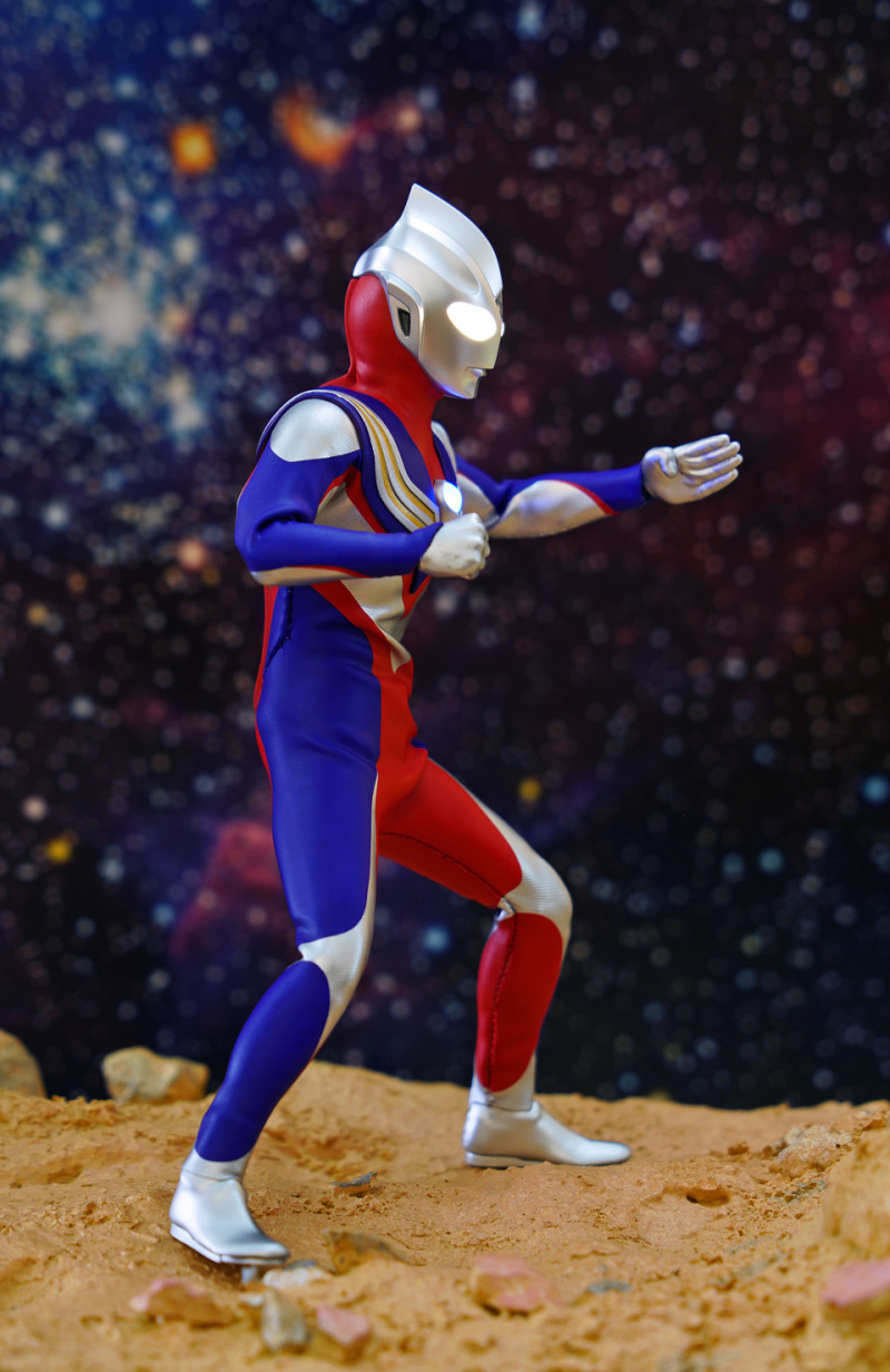 Alphamax 的 Tiga 在可玩性及耐久性上的確完勝真骨雕!不過可動方面,頸部及腰部的可動性只屬一般。然而這迪加某程度上已經是一個12吋級數的 figure,雖然外套已預留一定空間給各關節活動,但擺動幅度始終沒有可能像 SHF 一樣沒有限制。大家把玩時須特別留意!另外本素體外套大部份是拉賈布料,但不代表表面的塗裝不會脫色,故把玩後還是建議像玩十二寸 figure 一樣關節不要長期將關節保持屈曲狀態。
