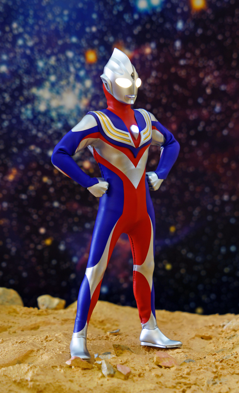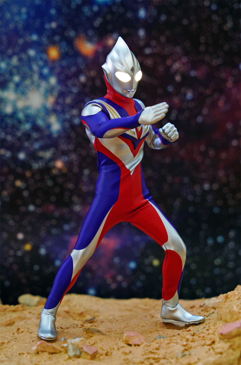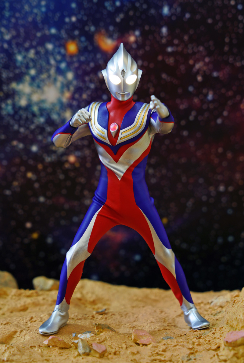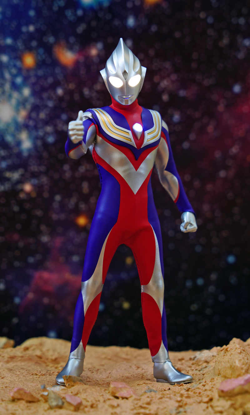 Alphamax 的 Tiga 在可玩性及耐久性上的確完勝真骨雕!不過可動方面,頸部及腰部的可動性只屬一般。然而這迪加某程度上已經是一個12吋級數的 figure,雖然外套已預留一定空間給各關節活動,但擺動幅度始終沒有可能像 SHF 一樣沒有限制。大家把玩時須特別留意!另外本素體外套大部份是拉賈布料,但不代表表面的塗裝不會脫色,故把玩後還是建議像玩十二寸 figure 一樣關節不要長期將關節保持屈曲狀態。