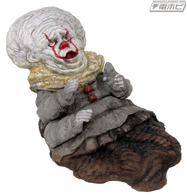 這次根據《牠:第二章》製作的轉蛋同樣收錄了四款造型,分別是拿著紅色氣球的立體人形「Pennywaise」、如同巨大蜘蛛一般的「True Form」、吐出長舌頭的頭像款式「Evil Face」,以及遭到魯蛇俱樂部言語攻擊、失去力量之後的衰弱造型「IT the END」,True Form 的長度來到頗具存在感的 12 公分,讓人回憶起劇中的最後激戰!而 IT the END 則是十分少見的潘尼懷斯弱化狀態,跟其它人偶一起搭配想必可以把玩出許多戲謔性十足的場面。