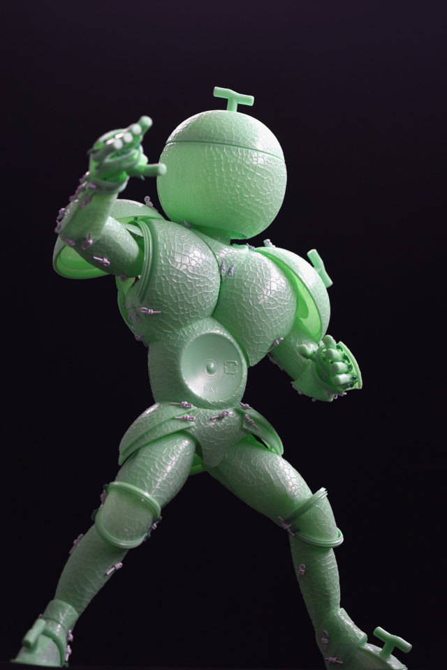 推主安居智博(@kami_robo_yasui)擅長利用手邊的玩具、容器製作成特別的公仔、人偶,而他這次將井村屋販賣的哈密瓜冰品「メロンボール」製作成壯碩強大的「哈密瓜超人」,他利用17個「メロンボール」容器組合、拼裝成人型,有著哈密瓜頭以及健壯身軀的超人就這麼誕生了。