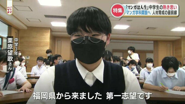 日本各地對漫畫有憧憬的學生都前來了解,包含;北海道、福岡等地都大老遠跑來,可想見這間全國首創的公立高中漫畫科對不少人的吸引力。這些學生表示,從小就喜歡畫圖創作,也嘗試創作漫畫,現在公立高中願意提供資源,無疑給他們的夢想再往前的可能。