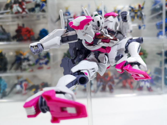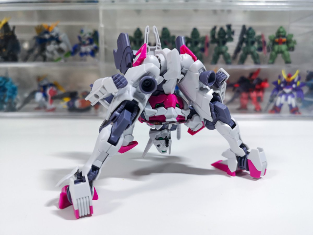 當然不只這樣,整個腿部關節都有著非常好的彈性可以擺出各種姿勢,讓 YouTuber タカハシ也驚豔這次 HG 的魔靈鋼彈居然可以做出這麼多變化。