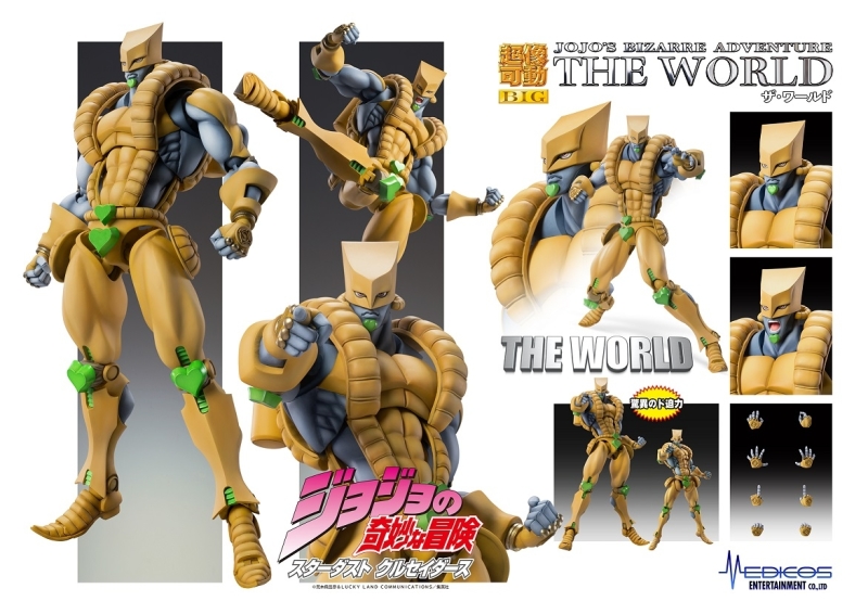 日本 Medicos 玩具公司旗下比「超像可動」更巨大的「超像可動BIG」系列,終於推出《JOJO的奇妙冒險 第三部星塵鬥士》中的「超像可動BIG 世界」及「超像可動BIG DIO迪奧·布蘭度」兩款新作!參考售價為各 21,780 日圓,預計將於 2022 年 12 月發售!