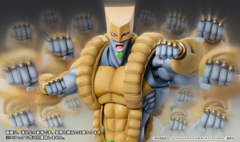尺寸魄力 25 公分!結合存在感的大尺寸與究極可動、精緻造型的「超像可動BIG」,在 2018 年後終於再開系列新作,第四彈「超像可動BIG 世界」在先前釋出商品化消息就引起注目!還原DIO的替身世界魄力的造型,壯碩的人型替身,外觀看來與DIO相似,同樣為一身黃綠配色,雙脊形氣管、心形裝飾等皆如實呈現。附有多款替換手勢,搭配DIO一起賞玩重現劇中場景!