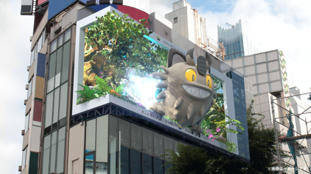 《寶可夢》可說已經是全球知名的作品,《Pokémon GO》融合了《Ingress》的玩法,在世界各地都相當受到歡迎,更有不少從未玩過電子遊戲的長輩也為此瘋迷。而8月8日不只是父親節,也是「國際貓咪日」,《Pokemon GO》便從這天開始至9月5日止,在「Cross Shinjuku Space」大樓的頂樓巨型廣告看板上,播放裸視3D的「貓寶可夢」主題廣告。