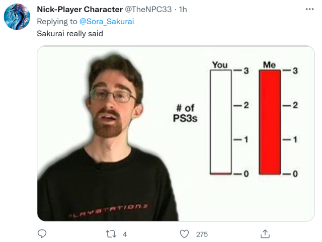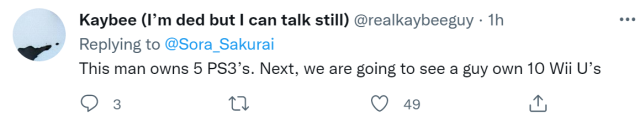 身為任天堂遊戲開發擔當的櫻井政博,居然當時就買了五台 PS3,至今還有兩台庫存當備用。讓不少粉絲驚訝不已,買了五台幾乎是 SONY 粉了吧 ! 不過過去櫻井就秀出他有 10 台 PSP 的收藏,只能說遊戲開發者的收藏比起玩家可能更為驚人阿 XD。