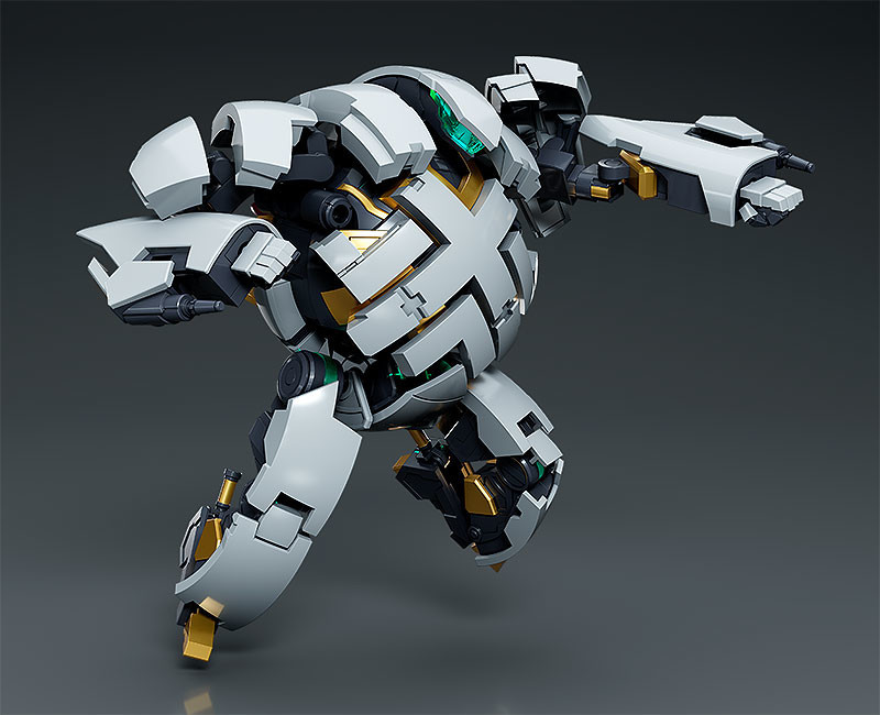 「MODEROID Arhan」套件使用多色成形零件與貼紙製作,完成後便能以無剩餘零件的完全變形機構再現待機、啟動兩形態。各關節設計也具備一定的可動範圍,能夠使用突擊用步槍、刀刃、替換式造型手掌等零件把玩出各種戰鬥姿態,雙臂附有「重視比例手臂」、「推進器展開」兩種造型可替換,重視比例手臂使用替換零件後便能展開光束槍。
