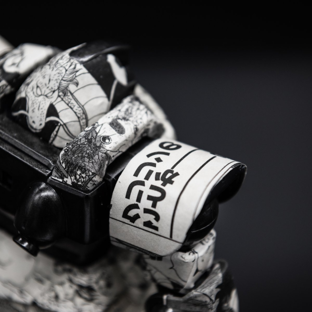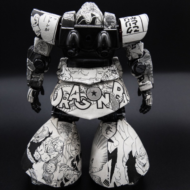 推主這台「痛德姆」,是將德姆組裝模型重新上色之後,搭配《七龍珠》漫畫中的場景,列印成貼紙後切割貼在模型上,透過剪裁設計,讓貼紙能夠好好的貼在德姆的裝甲上,讓他有著不一樣的味道。