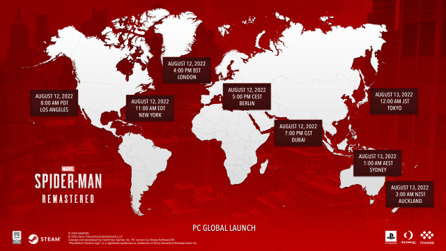 再剩下兩天的時間,一度轟動全球電玩迷、漫威迷的《漫威蜘蛛人》(Spider-Man)就要正式登陸Steam,以及Epic Games Store兩大PC平台,而今日電玩開發商Insomniac Games也很貼心的,在Twitter上公開了全球各地區的解鎖上架時間。