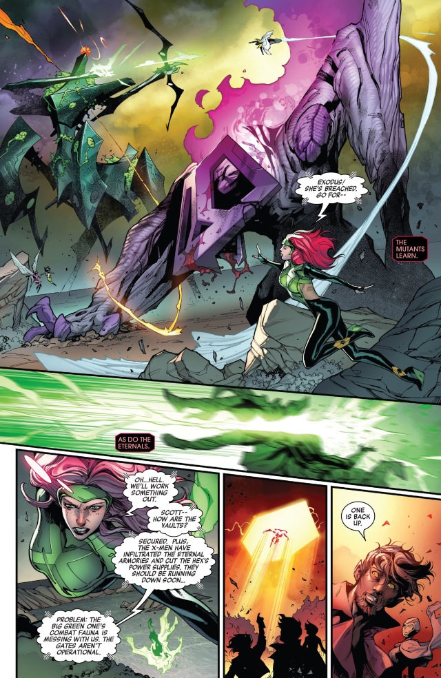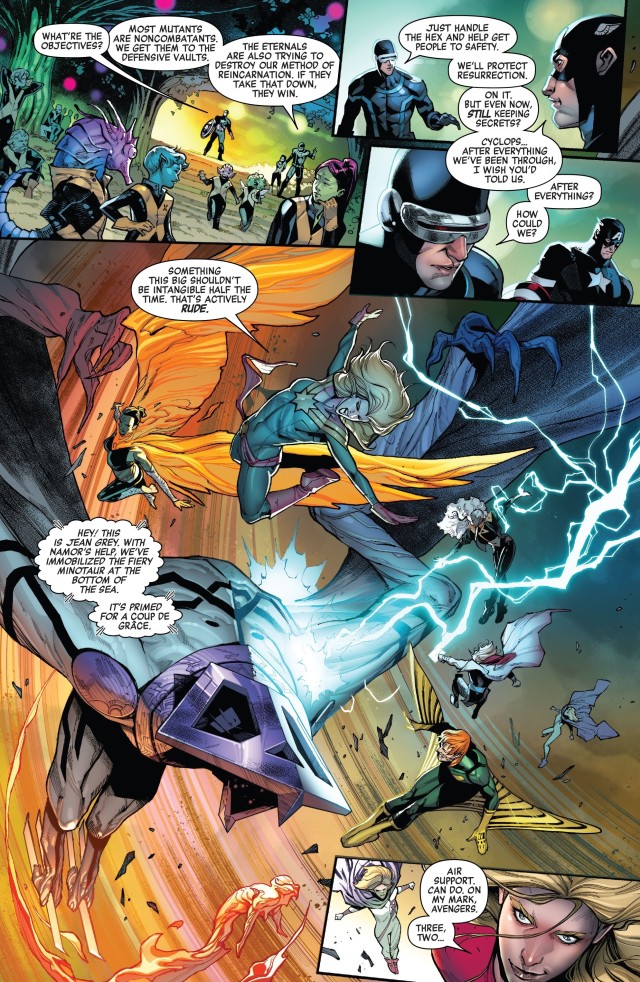 鳳凰(Phoenix)、索爾(Thor)、驚奇隊長(Captain Marvel)和星標(Starbrand)等重火力前去攻擊The Hex,美國隊長(Captain America)等人則去協助沒有戰鬥力的克拉科人避難。