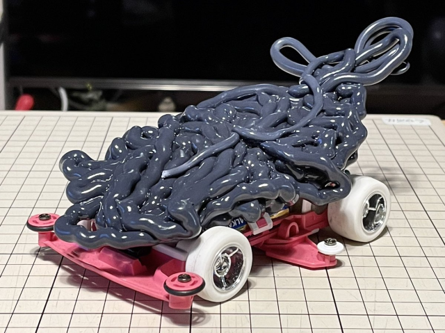 而推主也買回家使用,結果...當成了四驅車上的殼裝,雖然看起來滿特別的,但還有點怪可怕的 QQ。
