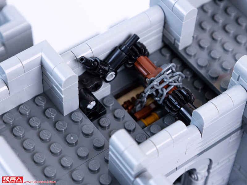 ▼ 利用深灰色平板零件勾勒出來的細長「銃眼」,雖然無法實際讓樂高的槍枝零件鑽出來射擊,但有設置這個機構也讓本作看起來更為逼真。