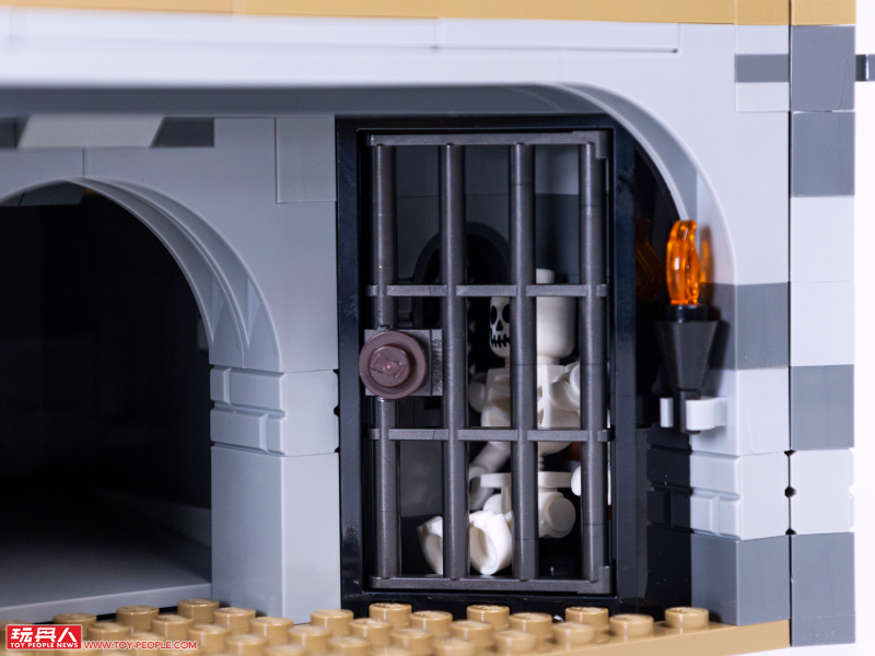 ▼ 這邊是地下一樓的地牢,設計出牢房之後當然不能不附上骷髏,值得一提的是如果有敵軍進攻,收起城門就可以把落下的敵軍直接打入地牢中,但不是監獄裡頭,是會滑落在中間的位置。
