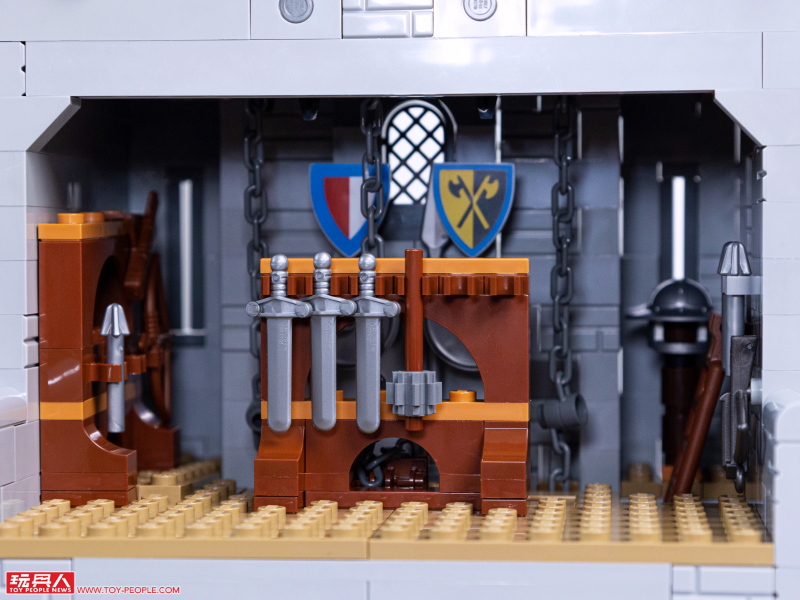 ▼ 二樓的武器庫裡頭放了豐富的長劍、流星鎚、弓箭、盾牌、頭盔,同時也是連動城門、格柵閘門鎖鏈的放置處。