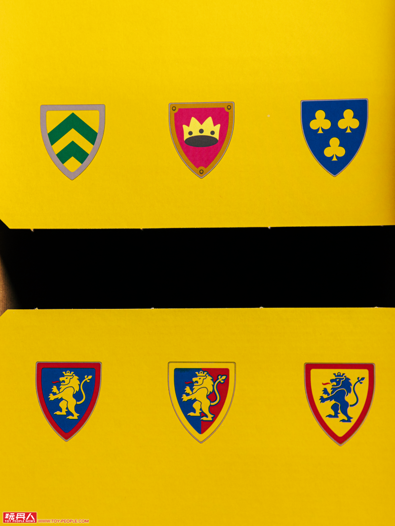 ▼ 翻開之後是獅子騎士的盾牌樣式一覽,上排的三面盾牌其圖案是來自編號「375 城堡 (Castle) 」士兵所持有的盾牌,自 1978 年穿越好久的時光再次現身~感動!