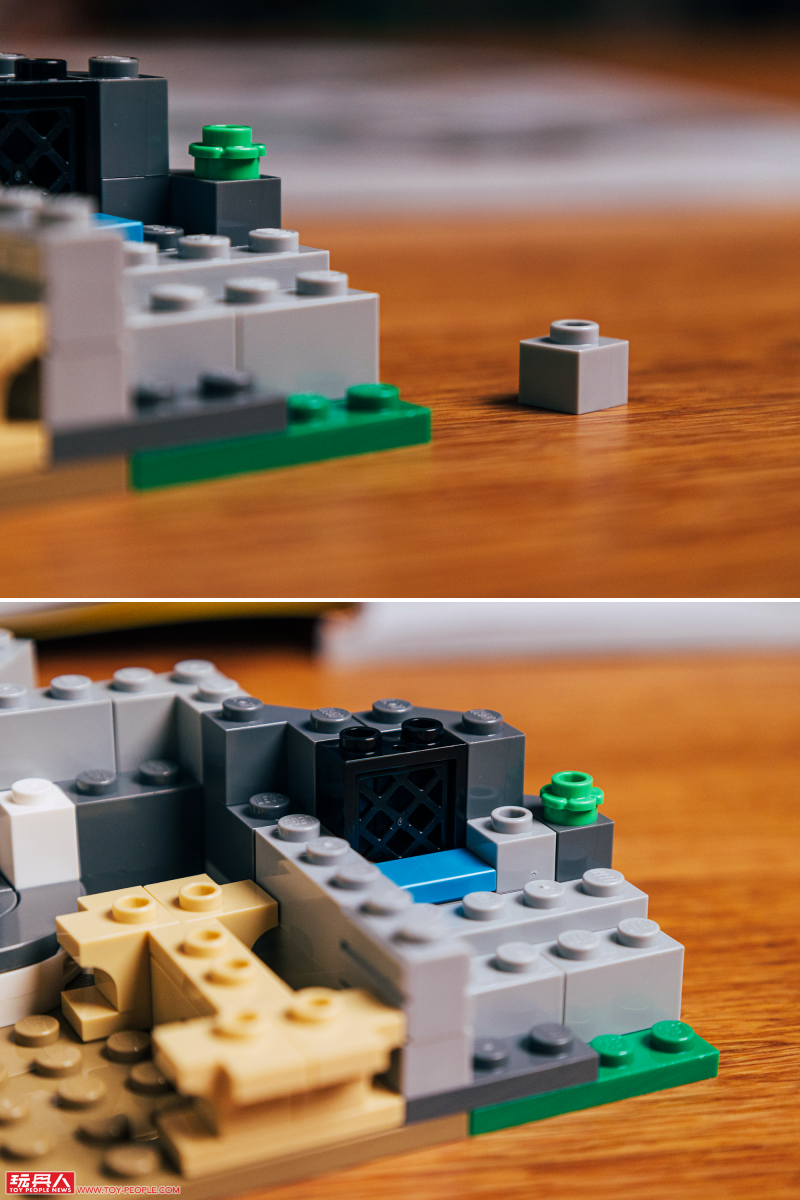 ▼ 護城河石洞有很讚的岩壁堆砌技巧可以參考!推薦給喜歡自製 MOC 的玩具人。