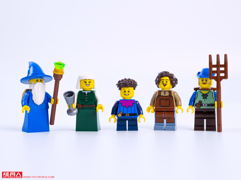 看完建築接著就進到人偶陣容的部分!大致上可以分成「獅子騎士與女王」、「森林守護者」、「黑鷹軍」,以及一般市民、魔法師、監牢裡的骷髏,22 款人偶直接讓你可以把玩出許多生動場面!