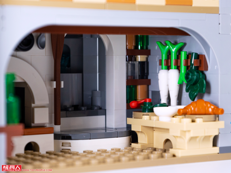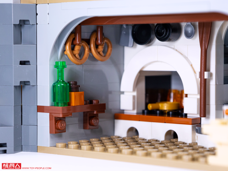 ▼ 廚房裡頭的細節相當豐富,包含鍋碗瓢盆、窯、掛著的蝴蝶餅,中央的後方是水槽,不過在組裝完成之後就比較不容易欣賞到。