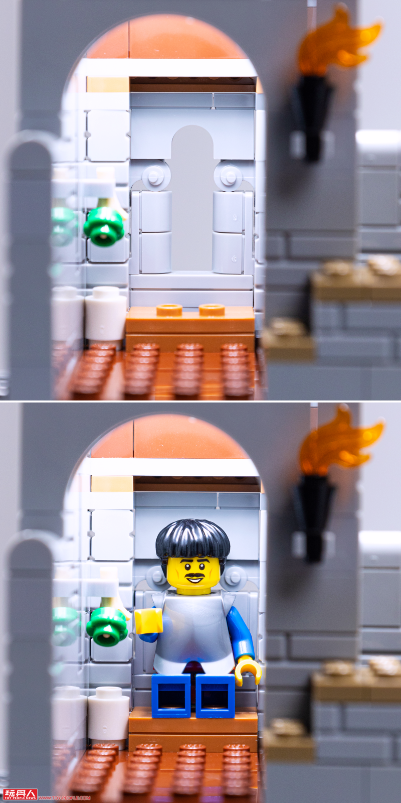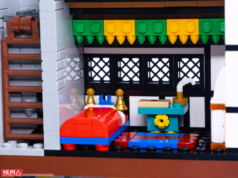 ▼ 臥室旁邊設置了一個相當隱密的空間,裡頭放了一隻金色青蛙,除了要合併城牆才能從縫隙中看到之外,組裝完成之後還會有一道樓梯擋著,這青蛙肯定是個狠角色。