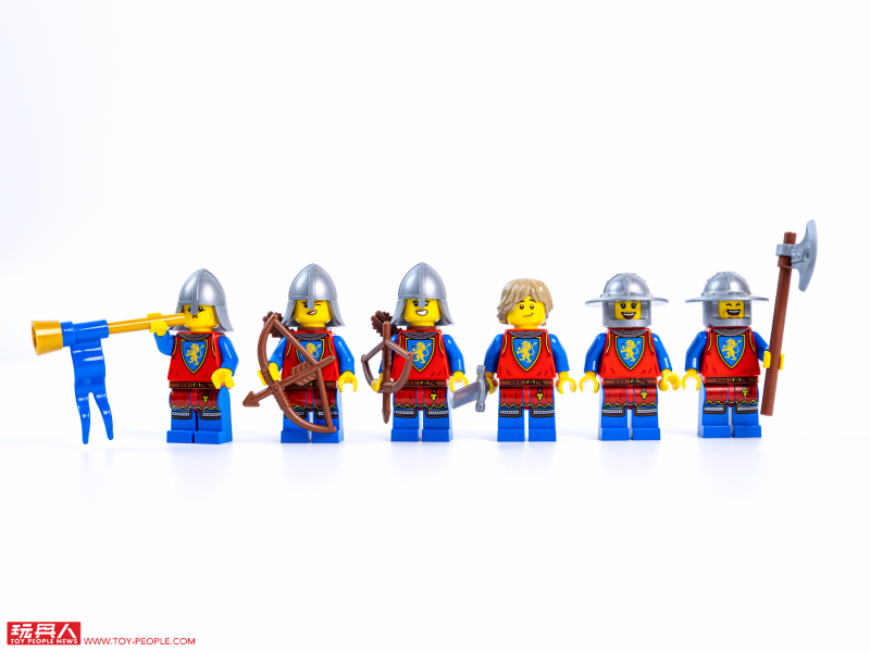▼ 首先是 9 名的獅子騎士成員與女王總共 10 位,包含弓箭手、騎士、劍士的兵種,除了精美的印刷之外,造型豐富的頭盔、胸甲也讓這些士兵把玩起來更加有趣多變。