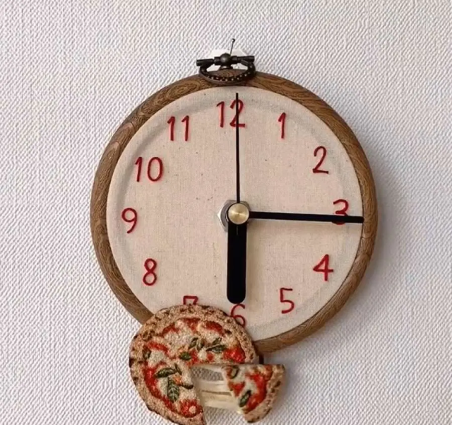 這個超吸睛的「披薩時鐘」,最大特色就是鐘擺下方的手作刺繡披薩,會隨著鐘擺擺動,披薩可以拉起出現美味可口的起司,是不是讓你邊看時間食慾也不禁被帶動了呢 ?
