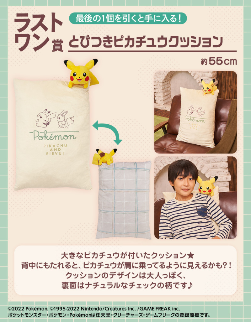 此次推出的「一番賞 寶可夢 朱・紫 發售紀念抽獎」 A 賞是歷年定番的御三家抱枕,精靈球造型軟墊上方縫上新葉喵、呆火鱷、潤水鴨的布偶,玩遊戲或看書時就能放在大腿上舒服地墊著雙手。B賞則是約 29 公分高的皮卡丘布偶,手中抱著小杯子能用來收納各種小物!而 C 賞則是長約 27 公分的伊布布偶,沒有什麼特殊功能,就是很可愛!