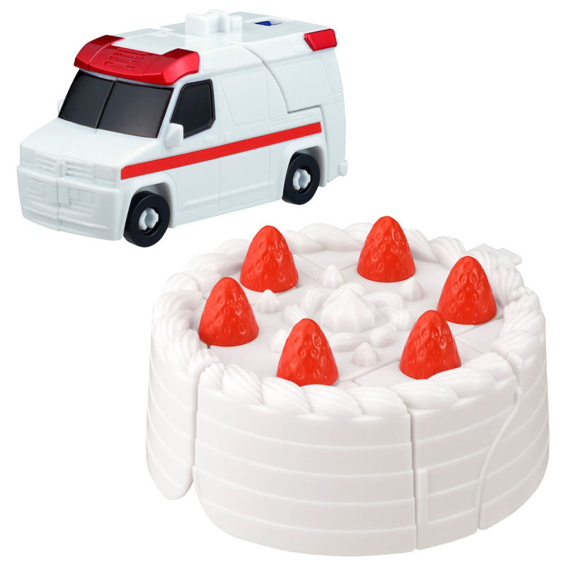 第二波同樣推出了顏色相近確難以聯想的兩款商品組合:黃色的「鳳梨巴士」、紅配白的「救護車蛋糕」,保持物體原型的同時也內藏巧妙的變形合體機構,只要對準合體卡榫壓進去便能藉由彈簧機構瞬間展開,經過簡單的調整後便能完成合體後形態!