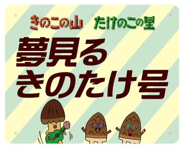 由日本明治所推出的「蘑菇山」與「竹筍里」巧克力,從 1970 年代相繼推出就受到消費者喜愛,意外引發了兩者美味程度的爭論,即使在今天也仍是一個熱門話題。先前官方推特上傳出兩者已經和好互稱兄弟的消息,讓不少網友驚訝,最近又宣布攜手與青森縣地方鐵路-津輕鐵道合作,打造專屬「夢見香菇竹筍號」列車,吸引粉絲前來朝聖。