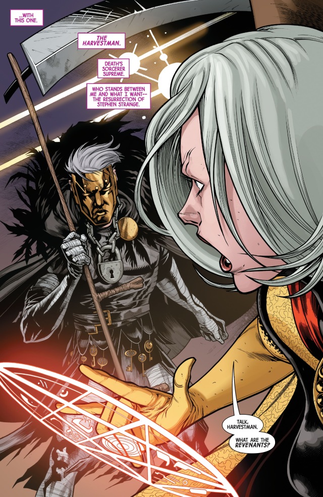 後來揭露收割人不僅僅是死亡女神的代行者,更還是死亡維度的至尊魔法師;而他也再三強調史蒂芬‧史傳奇現在已經是死亡女神的財產,絕不可能還給克莉。