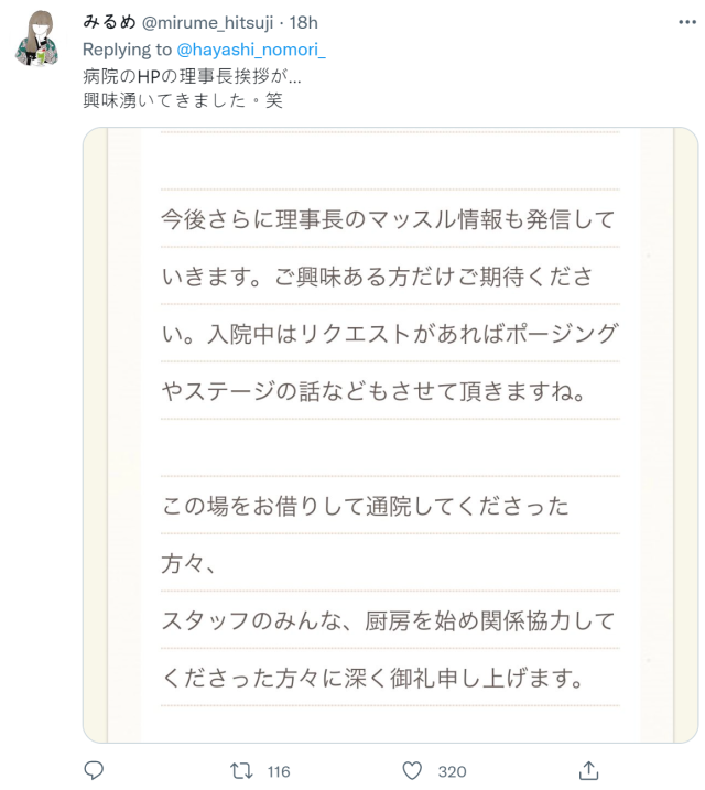 而這樣的網路爆紅意外也讓診所被不斷詢問,在醫院網站也貼出了...關於理事長的公告,還是希望大家專注在醫療上,不過...大家還是對這位肌肉醫生很感興趣www。