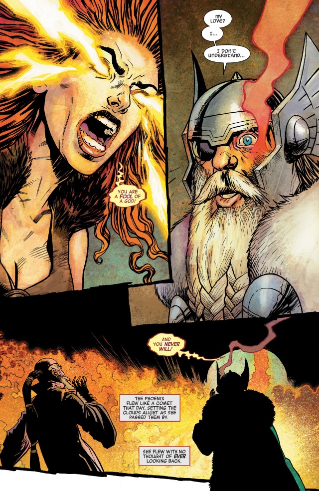 在過去,火髮確實與奧丁一度陷入熱戀之中,但是她卻在奧丁半強迫的逼婚之下憤而離開了地球。但是身為土生土長的地球居民,她一邊擔心著鳳凰之力終究會毀滅一切,一邊又害怕自己的離去會讓地球無人守望。