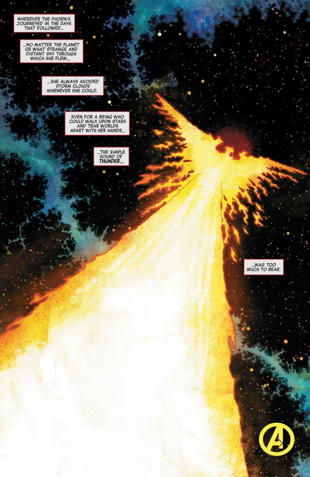 所以鳳凰之力再次回歸宇宙,踏上前往其他世界的旅途;而火髮總會避開各個星球上的雷雲,因為雷聲總會讓她回想起那一日的那個嬰孩,因而悲傷萬分......