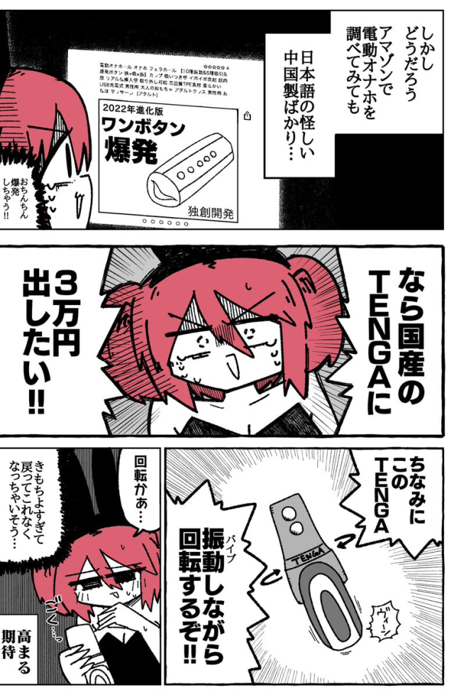 雖然有些人可能會不好意思,對於性需求部分,除了手動 DIY 外,飛機杯絕對是一個很棒的選擇 ( 以男性觀點來看 ),當然最知名的品牌就是 TENGA 啦 ! 最近推特上一位漫畫家推主-バニきち ( @oratV2AB ) 購買了要價超過三萬日圓的「TENGA電動飛機杯」,他將使用感想畫成漫畫,來看看到底如何吧 XD。