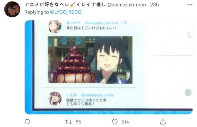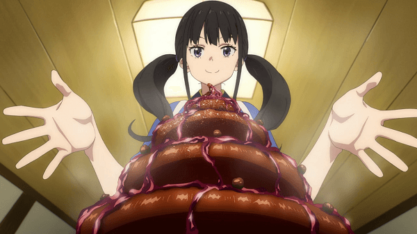 不過這話也因為這個造型奇特的甜點,意外成為網路熱議的話題,本來在本季就是強權之一的《Lycoris Recoil 莉可麗絲》,除了香香的女角之外惡趣味搞笑也讓人難以抵擋阿 XD。如果你還沒看過這部作品的話,小編強力推薦,有戰鬥還有搞笑也有香噴噴的婆給大家欣賞 ( ? ) ,不會讓你失望啦 !