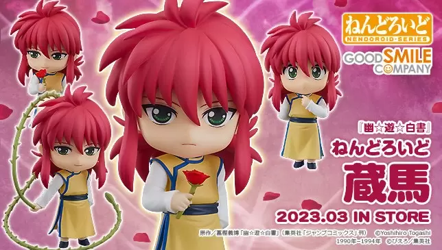 由日本 GOOD SMILE COMPANY 發行,旗下種類超過 1000 款的人氣商品「黏土人」系列,繼「浦飯幽助」後,再度發表了出自《幽遊白書》的最新商品「黏土人 藏馬」可動人偶,參考售價為 6,700 日圓,預計於 2023 年 03 月發售。