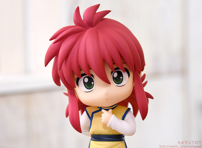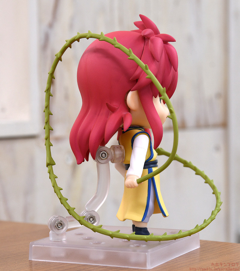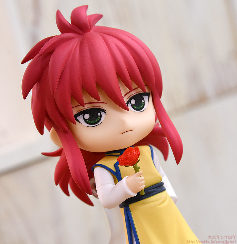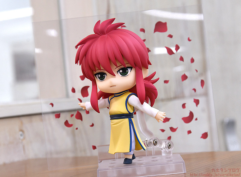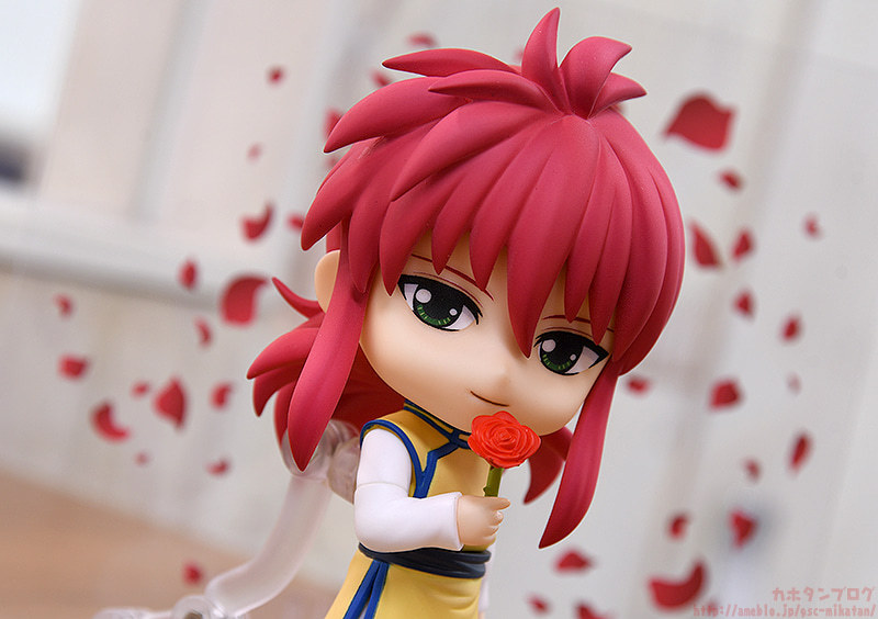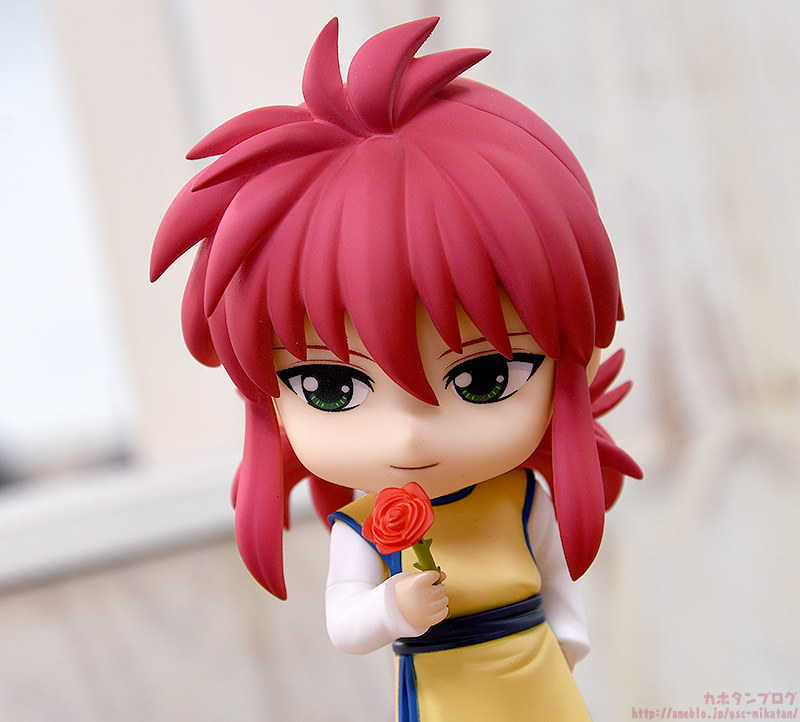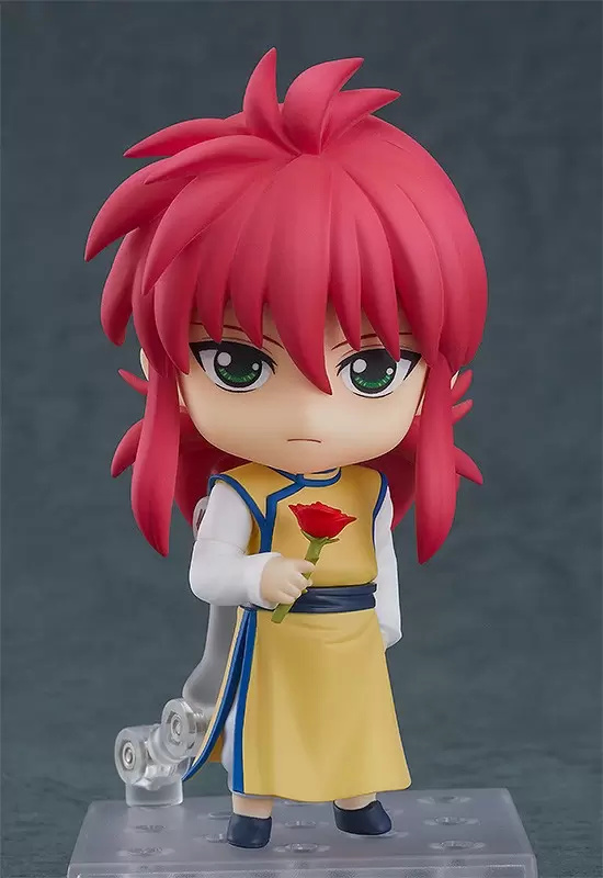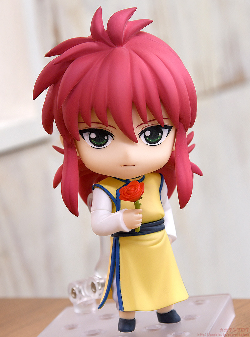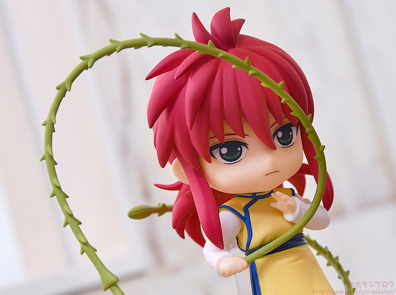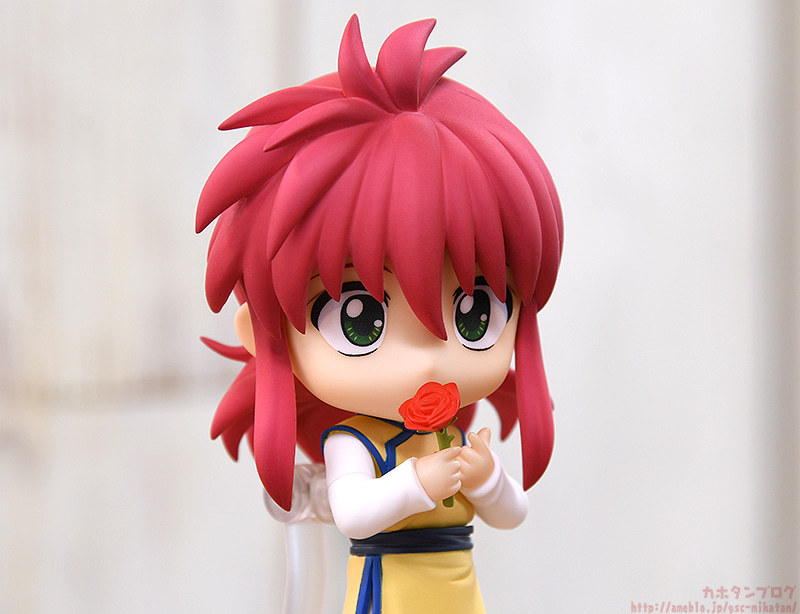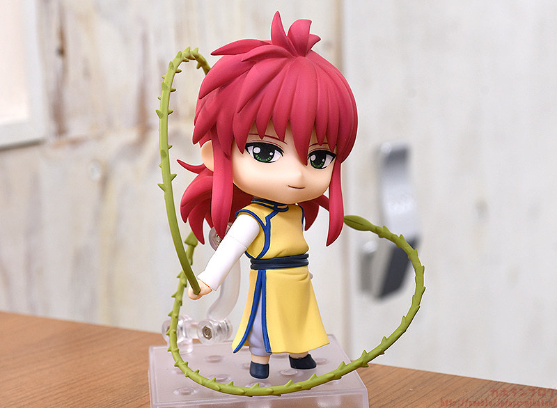 「黏土人 藏馬」可動人偶,尺寸全高約 10 公分,以可愛的 Q 版造型呈現藏馬初期的服裝和特色的紅長髮造型,附有冷酷的「普通臉」、虛幻的「微笑臉」,以及超可愛又有點討厭的「裝傻臉」三款替換表情零件!搭配浪漫的配件「玫瑰花」、戰鬥場景使用的「鞭子」與印有玫瑰花瓣的「插畫片」背景,盡情賞玩藏馬華麗又帥氣的模樣!
