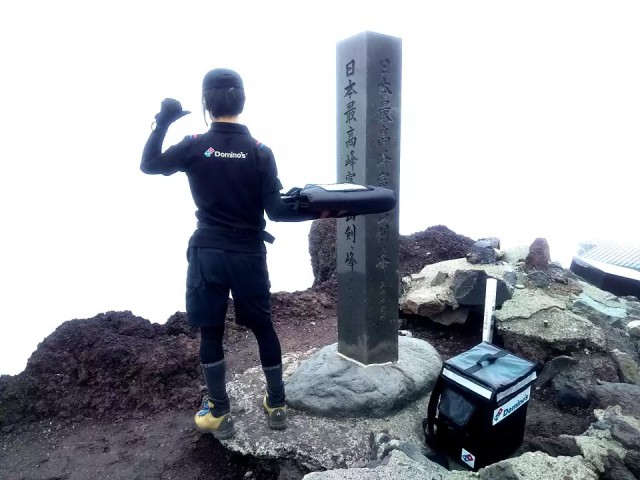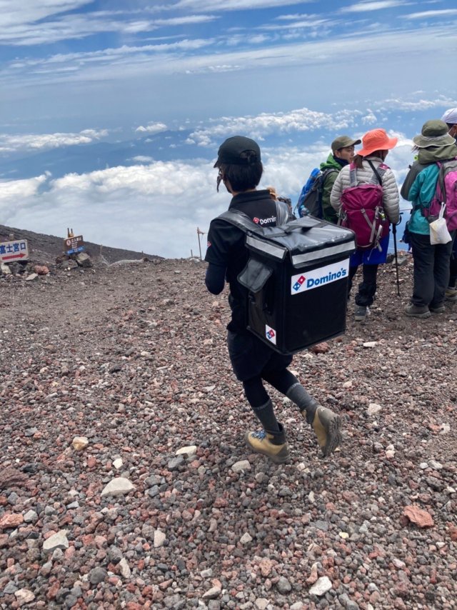 這名外送員是一位叫做カズち(@fatmanairsoft)在Twitter上所分享的,雖然說來不敢置信,但的確有人在富士山上叫了達美樂披薩的外送。或許在這種情況下,多半外送員很可能是直接拒絕服務,但這位カズち卻是靠著毅力跟堅持,整整花了5小時49分的時間,將披薩成功送至富士山的山頂。