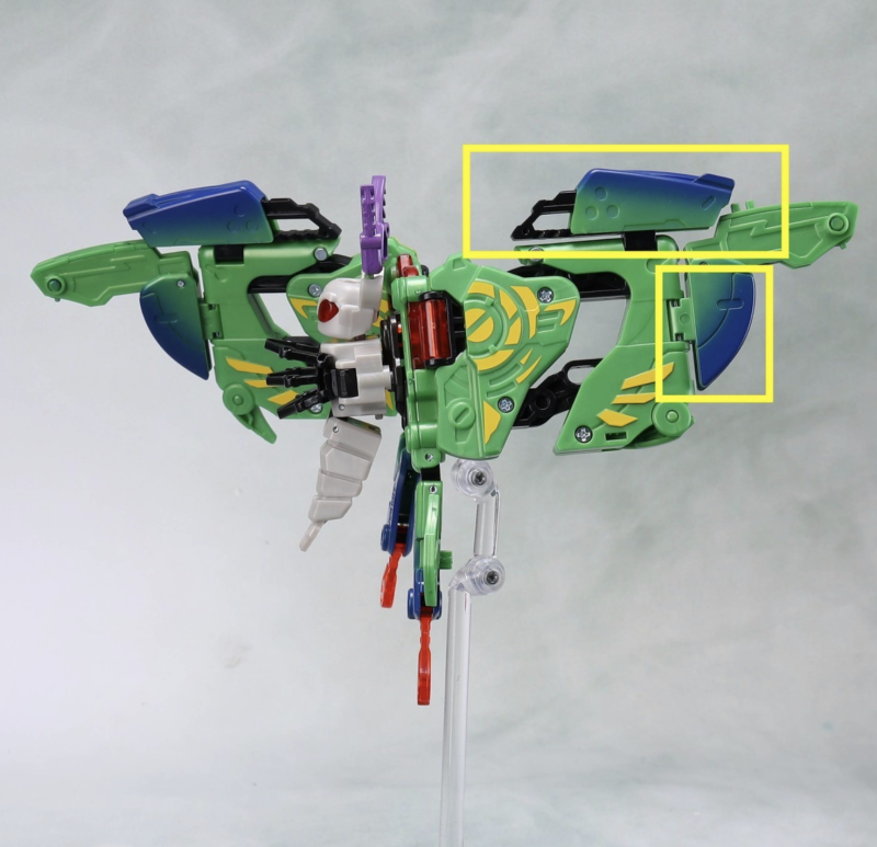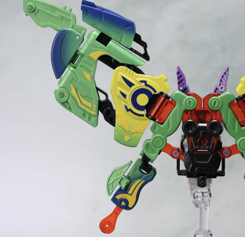 兩個羽翼都可以進行彎折,漸變色的零件處也可翻折,呈現出多種造型。