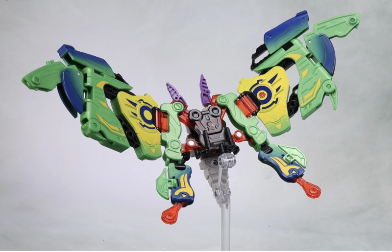 和之前的飛鳥族産品壹樣都有著十分巨大的翼展,雙翼以綠色爲主,還有著藍色的漸變塗裝,明黃色的移印,多種撞色帶來的視覺沖擊感很強烈。
