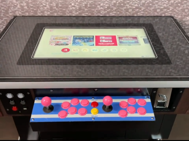 而或許也是為了能夠重回當年那種熟悉的娛樂感,為此引發出不少厲害的創作者,將身邊的主機電玩改造成具有另一種風味的時代街機。例如這位日本Twitter網友パソケード(@pccade),就是利用了街機搖桿與大型螢幕,將Nintendo Switch徹底改造成了一台大型桌面式街機。