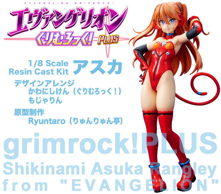 人氣原型師川西健太(ぐりむろっく!),於 2003 年創作出話題性的「GrimRock!版 綾波零&明日香」套件,結合福音戰士角色與大膽的類泳裝造型+尾巴設計,在當時引起了粉絲間很大的迴響。而在時隔近 20 年之後,這款經典作品將以新技術、繪師もじゃりん重新繪製設計,再度推出!「Evangelion GrimRock! PLUS 明日香」1/8比例 GK 套件,共有米色、白色兩種成形色,採用初學者也能好上手的分割零件組合,難以塗裝的眼睛也附有水貼貼紙,重現可愛又性感的獨特風格明日香~
