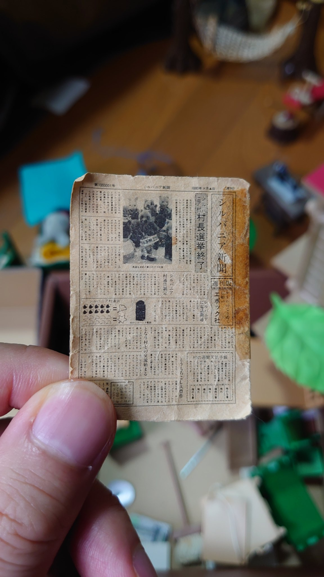 透過放大鏡仔細端詳後得知,當年的這份「森林新聞」(シルバニア新聞)刊登了如森林村村長選舉結束並有當選人的照片,以及村內的通貨制定(單位為1橡子)還有電話開通等新聞。
