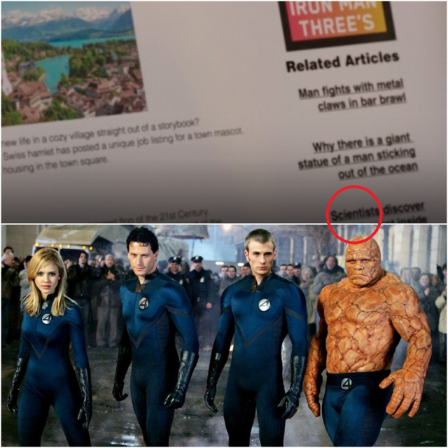 下面這排「科學家們在xxx中有驚人發現」的新聞,其中的「科學家們」是否暗指即將登場的「驚奇4超人」呢?
