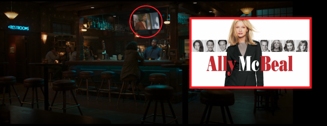 酒吧裡的電視播放著90年代經典律政喜劇《艾莉的異想世界》而該劇的主角們也會在下班後到酒吧去續攤。這個影集由福斯廣播製作,目前也可以 Disney+ 上觀看。