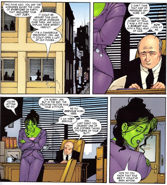 珍妮佛的原老闆因為「女浩克」的出現造成敗訴,決定要開除珍妮佛。這位老闆的造型與形象與2004年《女浩克》#1 漫畫原作中的造型幾乎一致。