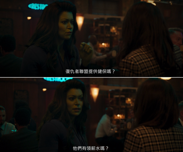 珍妮佛的閨蜜建議她加入復仇者聯盟,她則反問復仇者聯盟有健保或薪水保障嗎?
