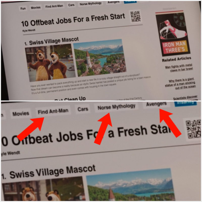 除此之外,網站上有很多值得玩味的彩蛋,上方有「蟻人在哪裡」、「北歐神話」與「復仇者聯盟」等連結。