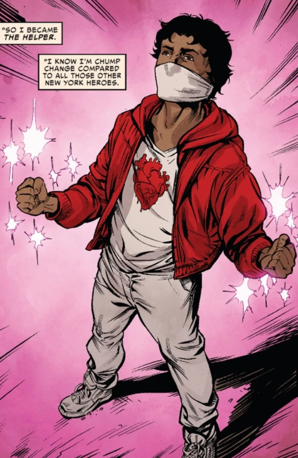 在漫威漫畫中,曾經出現過一位一直嚮往成為超級英雄的年輕人名為Yusef Abbas。 他後來獲得超能力之後,開始自稱為「Helper」,並於英雄內戰其間加入了美國隊長率領的反註冊派,也因此之後遭到了神盾局逮捕。