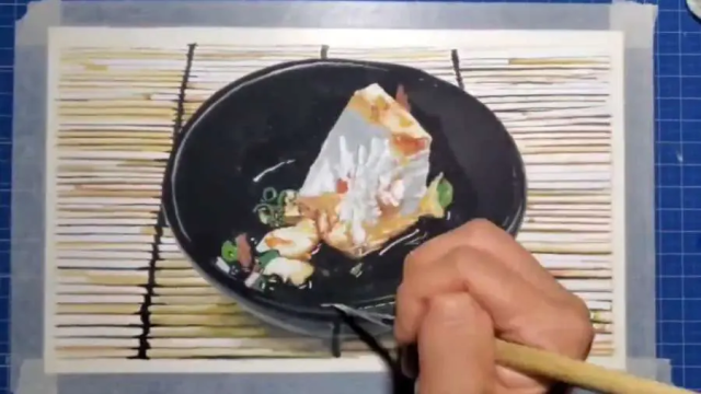 通常在畫畫創作的時候,都是把作品畫出結果就結束了,不過山田 めしが 並不是這樣做,它將碗裡的豆腐畫出來之後,卻繼續提筆,畫出豆腐被一口口吃掉的過程,最後碗裡的豆腐也被吃個精光,不少網友也讚嘆這樣的表現方式前所未見。