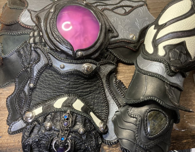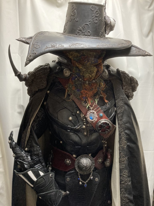 這整套服裝與配件,都是他自行挑選材料製作而成,包括身上的動物皮革、金屬配件以及絲綢布料等,皆參考原作設定集中的設定製作,如此長年的製作對他來說已經是生活的一部分,也展現自己對作品的熱愛。